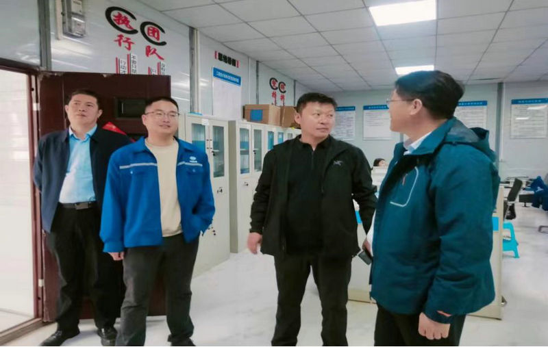 公司副總經(jīng)理李洪江(右2)在查看工程安全監(jiān)督部文化墻時稱贊文化墻有創(chuàng)新新意、值得總結(jié)推廣