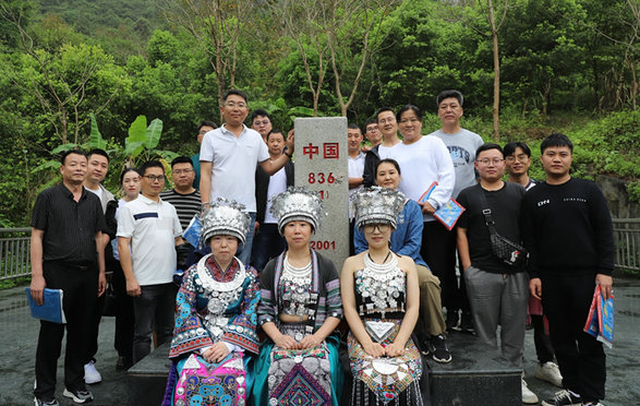 職工們漫步在曲曲彎彎的景觀道上,神清氣爽,相互交流著對(duì)瀑布的形狀和氣勢(shì),驚嘆于大自然的神來(lái)之筆,你一言我一語(yǔ),發(fā)揮各自豐富的想象力,并與瀑布合影留念,表達(dá)對(duì)大自然的熱愛。從瀑布到界碑處,都留下難忘的記憶。旅游是快樂的,也是辛苦的,在通往山頂?shù)氖A上,走走停停,不時(shí)回望來(lái)時(shí)的路和欣賞身后的美景。由于與越南交界,大家把目光專住地投向?qū)γ嬖侥系纳剿谰?,有的說(shuō)跟中國(guó)的山水沒啥區(qū)別,有的說(shuō),還是中國(guó)廣西的山水好,中國(guó)改革開放幾十年來(lái)變化太大了。有的職工聯(lián)想到企業(yè)的發(fā)展,認(rèn)為趕上好時(shí)代了,沒有企業(yè)的發(fā)展,就沒有如今職工豐厚的待遇。