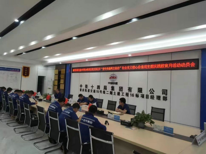為全面貫徹學習習近平總書記文化思想,著力培育和踐行社會主義核心價值觀,深入推進社會主義精神文明建設,中鐵建重慶軌道交通15號線二期總承包部16標14局項目黨支部,充分利用會議動員,營造濃厚的宣傳氛圍,積極廣泛大力弘揚社會主義核心價值觀正能量,為項目施工提供攻堅克難的強大動力。