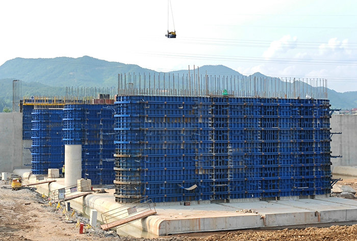 二公司承建的錢(qián)塘江中上游常山江一期招賢樞紐是4個(gè)樞紐其中的一個(gè),主要工程有:縱向混凝土導(dǎo)流墻、18孔泄洪閘、裝機(jī)容量為2x2750千瓦的發(fā)電站,以及電站管理區(qū)、廠房、上下游防洪堤等配套工程。該樞紐是個(gè)集水運(yùn)、發(fā)電、調(diào)蓄洪水的系統(tǒng)工程,施工難度大,安全風(fēng)險(xiǎn)高,對(duì)管理團(tuán)隊(duì)是一次繼挑戰(zhàn)杭甬高速海上建橋之后的又一次綜合管理能力的考驗(yàn)。為了打好招賢樞紐第一仗,公司副總經(jīng)理兼常山江項(xiàng)目負(fù)責(zé)人黃偉帶領(lǐng)執(zhí)行經(jīng)理陳良兵、總工郝偉亮等核心管理層人員查閱資料、實(shí)地考察、走訪當(dāng)?shù)厮麑<?,在掌握詳?shí)的資料之后,制定了科學(xué)的施工方案。去年9月份招賢樞紐右岸導(dǎo)流墻與泄洪閘墩率先開(kāi)工。首先組織機(jī)械設(shè)備,填筑起頂寬6米、高約10米的一期圍堰,將約200多米寬的常山江水一分為二,并動(dòng)用幾臺(tái)大型抽水設(shè)備白天黑夜外排堤壩內(nèi)20多萬(wàn)立方積水,然后開(kāi)挖基礎(chǔ)、底板平臺(tái)鋼筋混凝土作業(yè)。19米寬、3米厚的底板平臺(tái)完成后,進(jìn)入8、10、9、7號(hào)泄洪閘墩柱施工,他們組織施工人員綁扎鋼筋,在人力與塔吊、混凝土泵、汽車(chē)吊等多種設(shè)備密切配合下,安裝模具、澆筑、搗鼓等幾道工序進(jìn)展順利。期間,大風(fēng)、大雨和暴雨多次光顧,遭遇兩次強(qiáng)降水和上游水庫(kù)泄洪,他們不畏懼困難,搶晴天、戰(zhàn)雨天、抗洪搶險(xiǎn),先后完成了4座11.3米高(含底板平臺(tái))、2.6米寬的泄洪閘墩首節(jié)主體,尚有6米高的墩帽待汛期過(guò)后施工,為后續(xù)14孔閘墩和閣底、白虎攤、天馬3個(gè)樞紐工程施工提供了寶貴經(jīng)驗(yàn)。