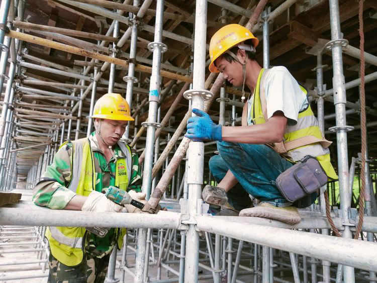 項(xiàng)目部員工在2號橋進(jìn)行模板支架拆除