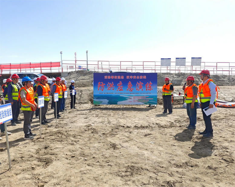 演練開始前,該項目安全總監(jiān)向參加演練的所有人員詳細講解了汛期事故發(fā)生的預(yù)防措施、應(yīng)急救援物資配備以及事故發(fā)生后應(yīng)采取的應(yīng)急救援措施,各應(yīng)急小組人員的責任分工等,對演練人員進行了一次現(xiàn)場安全生產(chǎn)教育。