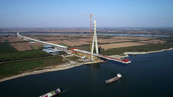 圖三、石首長(zhǎng)江大橋施工(王肖峰攝);