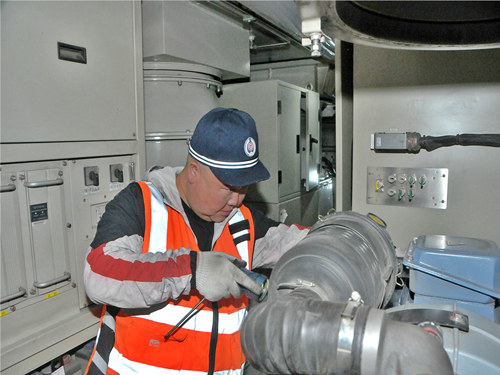 “一臺(tái)機(jī)車(chē)6個(gè)齒輪箱,更換一處需要15分鐘,還要對(duì)牽引電機(jī)逐個(gè)進(jìn)行補(bǔ)油,兩臺(tái)車(chē)下來(lái),我們要不停歇地進(jìn)行作業(yè),晚上機(jī)車(chē)就要上線,絕不能耽誤整體進(jìn)度。”王翰說(shuō)道。