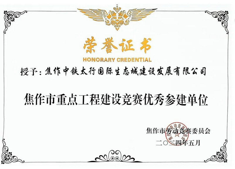 近日,焦作生態(tài)城公司獲得了“2023年度焦作市重點(diǎn)工程建設(shè)競(jìng)賽優(yōu)秀參建單位”榮譽(yù),為樹立企業(yè)外部形象、推動(dòng)中鐵中產(chǎn)置業(yè)公司高質(zhì)量發(fā)展做出了積極貢獻(xiàn)。