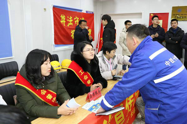 中國鐵路工程建設(shè)網(wǎng)訊(通訊員 王福生 報道)為增強農(nóng)民工的維權(quán)意識和企業(yè)知法守法意識,確保農(nóng)民工的合法權(quán)益不受侵犯,12月14日,長春市軌道交通集團在地鐵2號線西延線項目部舉行2018年關(guān)愛農(nóng)民工“暖心行動”暨普法大講堂活動,中鐵十四局集團和中慶建設(shè)集團等單位60多人參加了活動,會議由市軌道交通集團工會副主席王南主持。