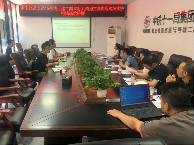 5月24日下午,中鐵建重慶軌道交通15號線二期土建工程總承包部18標(biāo)項目部組織建設(shè)單位、勘察單位、設(shè)計單位、監(jiān)理單位、質(zhì)量檢測單位、第三方測量單位、第三方監(jiān)控量測單位、總承包單位以及施工單位召開九曲河主變電所邊坡支護重力式擋墻基坑基底驗槽會議。建設(shè)單位結(jié)合驗收小組現(xiàn)場踏勘情況、資料核查情況及各單位意見,確認(rèn)基底驗槽順利通過,準(zhǔn)予進入重力式擋墻墻身施工階段。