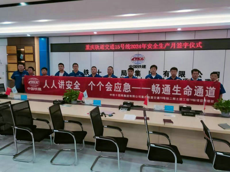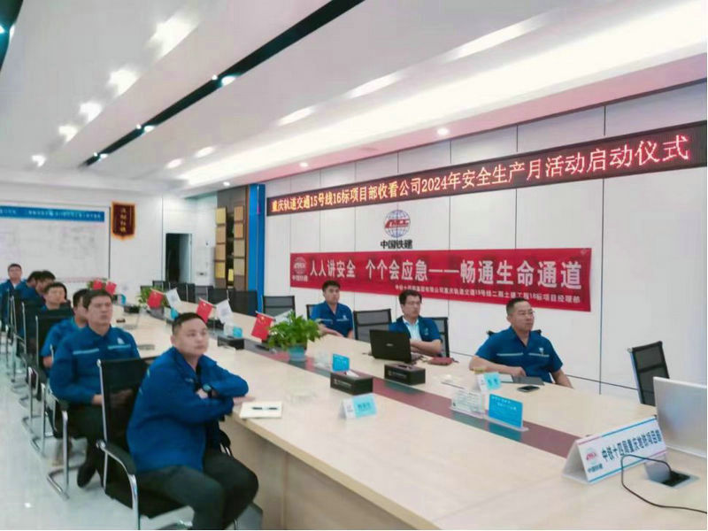 6月2日,中鐵建重慶軌道交通15號線二期總承包部16標(biāo)14局項目部舉行以圍繞“人人講安全、個個會應(yīng)急—-暢通生命通道”為主題的2024年安全生產(chǎn)月活動啟動儀式。