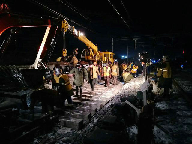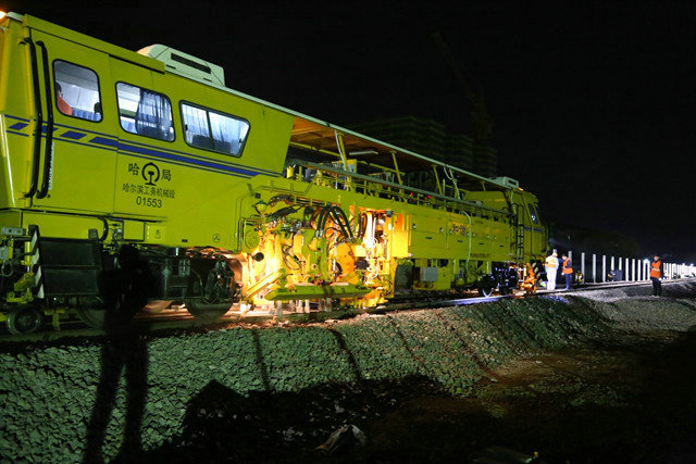 時(shí)間能磨平人的棱角,也能磨滅阻礙。隨著施工進(jìn)度的不斷推進(jìn),哈佳項(xiàng)目部迎來了8至12線關(guān)鍵的工期節(jié)點(diǎn),2017年4月28日,近600名作業(yè)人員、近40臺大小設(shè)備一齊沖進(jìn)預(yù)定線路,人工抬軌的號子聲、鐵鍬砟石的碰撞聲、機(jī)械設(shè)備的轟鳴聲此起彼伏。斷軌飛濺的鋼花、作業(yè)工人衣服上的熒光帶、防護(hù)員手里的探照燈在夜空中照亮了線路,在爭分奪秒的緊張搶戰(zhàn)氣息中平添了一抹建筑工人獨(dú)有的韻味,經(jīng)過15小時(shí)30分的激烈鏖戰(zhàn),佳木斯站場新建8至12線工程順利完成轉(zhuǎn)線施工任務(wù)。時(shí)間悄悄地走,佳木斯站場全線開通時(shí)間也逐漸的接近。6—7線于2017年11月30日順利開通,2線于2018年12月16日順利開通。
