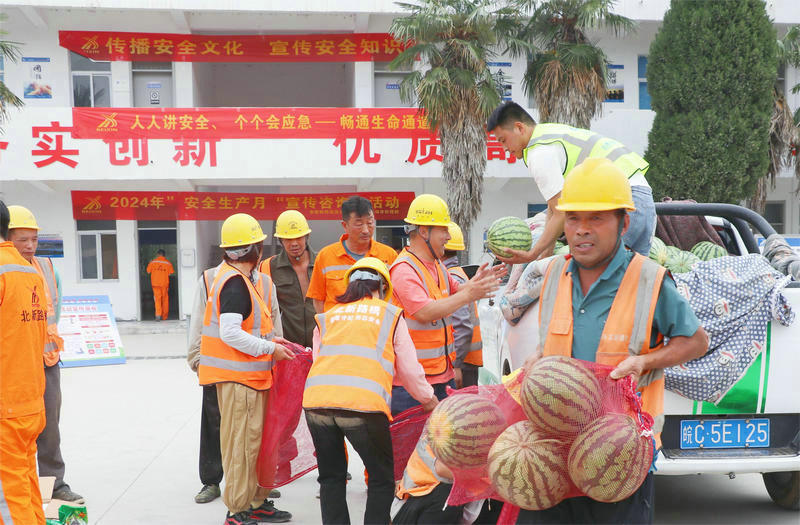 一個個甘甜的西瓜,一顆顆清香的綠豆,承載了項(xiàng)目部對一線工人的深深關(guān)懷,滋潤著每個人的心田。“雖然高溫天氣下的工作環(huán)境相對艱苦,但項(xiàng)目部的關(guān)心和支持,讓這個夏季不僅有清涼,更有一份甜甜的關(guān)愛。”一線工人們抱著西瓜,臉上洋溢著感激與振奮的笑容。