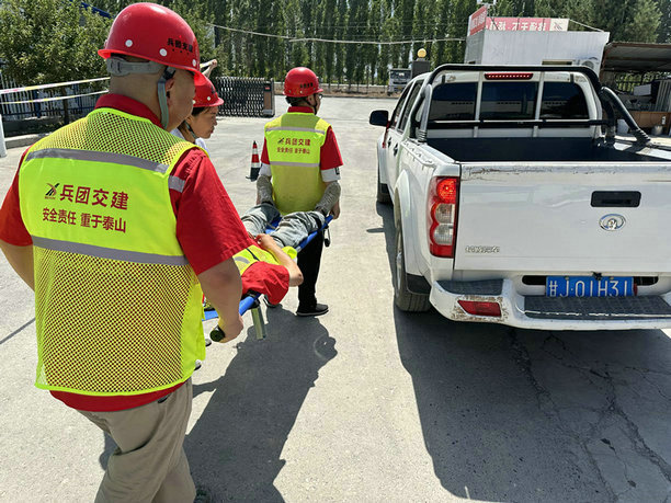 近日,北新路橋集團(tuán)兵團(tuán)交建公司第八師 G576一標(biāo)項(xiàng)目組織開展了機(jī)械傷害事故應(yīng)急救援演練。項(xiàng)目職工及現(xiàn)場(chǎng)工人共計(jì)24人參加。