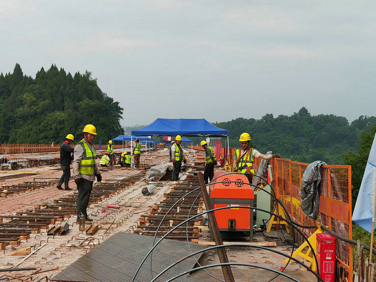 合川訊(通訊員 劉英華)6月21日,北新投資公司所屬重慶雙錢高速公路土建施工SQTJ2標段承建的萬福大橋施工現(xiàn)場,數(shù)十名建設(shè)者在炎炎烈日下架設(shè)T梁、鋪裝橋面、加工鋼筋、安裝排水等施工,現(xiàn)場一片繁忙,井然有序。