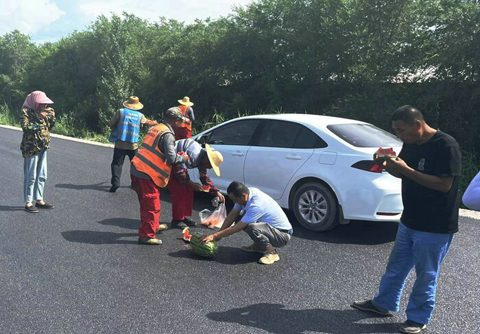 G30二標(biāo)項(xiàng)目經(jīng)理胡經(jīng)理親赴施工現(xiàn)場,為工人們送去了清涼的西瓜和礦泉水,讓他們在炎炎夏日中感受到一份別樣的溫情。“大家辛苦了!天氣這么熱,一定要注意防暑降溫,保證身體健康。”胡經(jīng)理一邊將西瓜遞到工人們手中,一邊關(guān)切地囑咐道。他的聲音溫暖而有力,猶如一陣夏日的清風(fēng),瞬間驅(qū)散了工人們心頭的暑氣。在現(xiàn)場,施工人員們紛紛表示感受到了項(xiàng)目部的關(guān)心和溫暖,表示將繼續(xù)保持高昂的工作熱情,為項(xiàng)目的順利完成貢獻(xiàn)自己的力量。