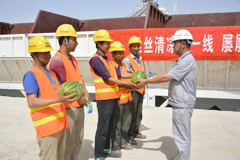項(xiàng)目書記李杰給少數(shù)民族工人送清涼