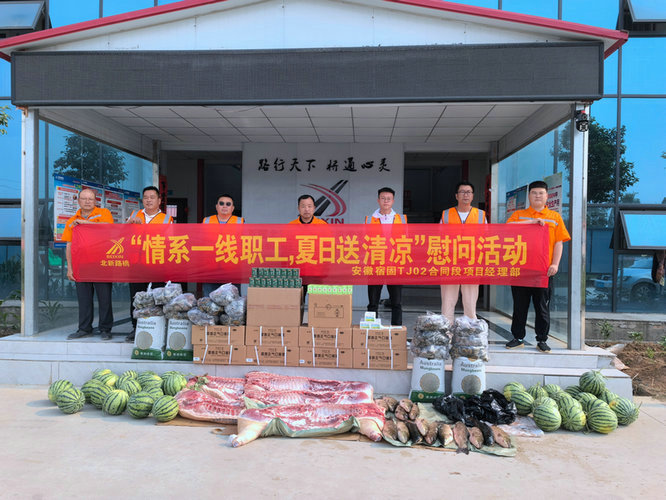 自進(jìn)入六月以來,宿州地區(qū)持續(xù)高溫,連續(xù)多日平均氣溫高達(dá)35度左右,持續(xù)的高溫天氣給奮斗在一線的工人帶來了嚴(yán)峻的考驗(yàn),為切實(shí)做好“夏日送清涼”慰問活動(dòng),項(xiàng)目部為一線工人準(zhǔn)備了1000盒藿香正氣液、1000盒風(fēng)油精、500盒十滴水、500袋仁丹、2000斤西瓜以及花露水、涼茶等防暑藥品和物資,對(duì)高溫天氣仍然奮戰(zhàn)在施工現(xiàn)場(chǎng)的工人表示衷心的感謝,并叮囑大家要注意勞逸結(jié)合、防暑降溫、保障身體健康。工人們接到項(xiàng)目部送來的慰問品紛紛表示,在強(qiáng)烈的陽光照射下,雖然感到悶熱難受,但感受到了關(guān)懷和關(guān)愛,并保證一定會(huì)克服酷暑高溫,堅(jiān)守崗位,盡職盡責(zé),積極投身于施工中。