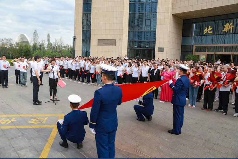 烏魯木齊訊(通訊員 雒煥鼎)7月1日,北新投資公司黨委與烏魯木齊市高鐵街道黨工委聯(lián)合開展慶祝建黨103周年“黨旗映天山”主題黨日活動,回顧黨的光輝歷程,傳承黨的優(yōu)良作風(fēng),進(jìn)一步增強(qiáng)兵地各族干部職工的榮譽(yù)感、責(zé)任感和使命感,堅(jiān)定新時代共產(chǎn)黨人的理想信念。北新投資公司、高鐵街道黨工委、北新大廈部分企業(yè)代表、高鐵街道各社區(qū)全體黨員干部共300余人參加活動。