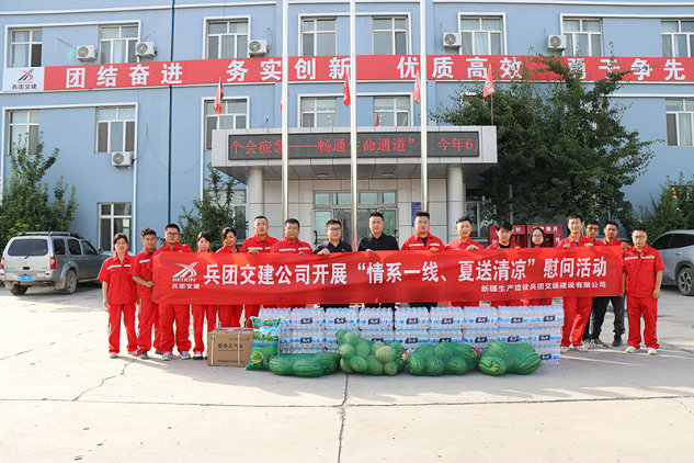 自入夏以來,全國各地開啟高溫炙烤模式。為做好職工防暑降溫工作,有效防控高溫中暑事件和安全生產(chǎn)事故的發(fā)生,近日,兵團(tuán)交建公司領(lǐng)導(dǎo)班子成員前往北新路橋集團(tuán)兵團(tuán)交建公司第八師G576線一標(biāo)項(xiàng)目開展了“情系一線 夏送清涼”慰問活動(dòng)。