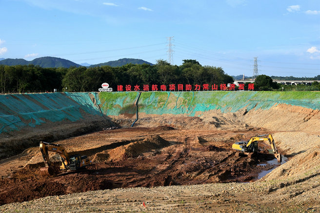 挖掘機(jī)開(kāi)挖電站廠房深基坑 呂奎元攝鐵路工程建設(shè)網(wǎng)訊(通訊員呂奎元 孫立斌)七月份全面進(jìn)入炙熱的高溫天。常山江航電樞紐項(xiàng)目推出“安全套餐”應(yīng)對(duì)極端天氣,為施工安全貼上一層“保護(hù)膜”。