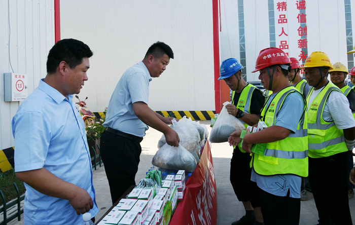 給員工發(fā)放防暑藥品和食品 孫燕攝 該項(xiàng)目“安全套餐”已經(jīng)落地,有效降低了安全風(fēng)險(xiǎn),保障了高溫天項(xiàng)目施工安全。