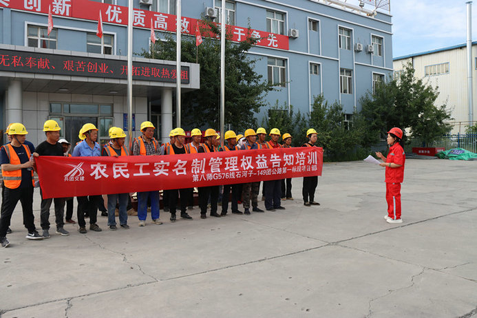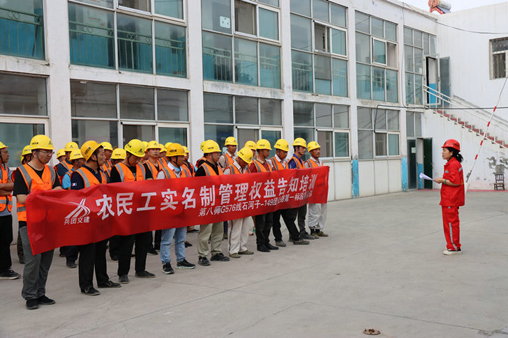 為進(jìn)一步構(gòu)建和諧的勞動關(guān)系,更好的維護(hù)項(xiàng)目部和農(nóng)民工的合法權(quán)益,近日,北新路橋集團(tuán)兵團(tuán)交建公司第八師G576—標(biāo)項(xiàng)目對新進(jìn)場農(nóng)民工開展維權(quán)告知培訓(xùn)活動,累計(jì)參加培訓(xùn)的農(nóng)民工達(dá)98人次。