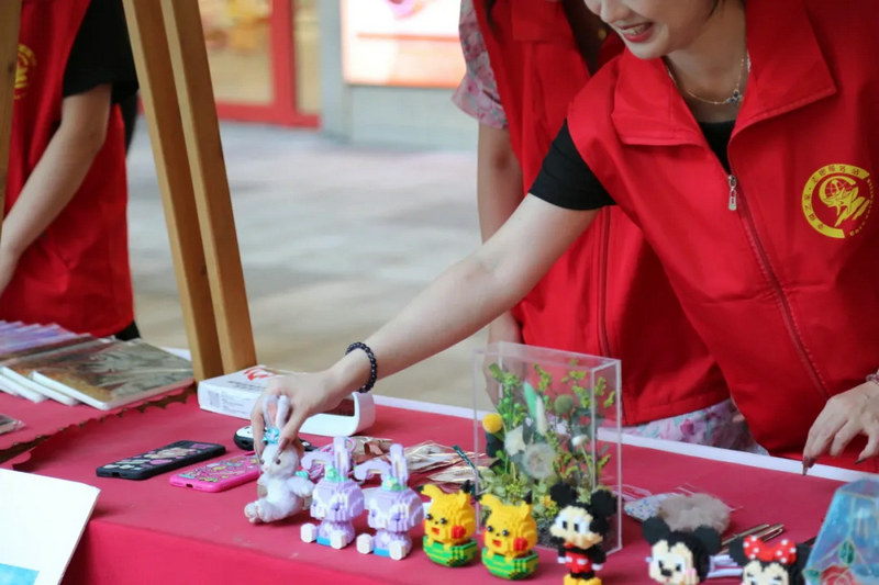 活動(dòng)現(xiàn)場(chǎng)設(shè)置了12個(gè)攤位,籌集了來(lái)自公益組織的書(shū)籍雜志、手工藝品等義賣(mài)物品。身穿紅馬甲的中鐵中產(chǎn)置業(yè)公司青年志愿者和新東方學(xué)生化身為攤位攤主,熱情地向往來(lái)的市民游客推銷義賣(mài)物品。除了義賣(mài)活動(dòng)外,新東方學(xué)生還在中鐵·泰和里街區(qū)主舞臺(tái)表演了精彩的節(jié)目演出,吸引了大量市民游客的目光。