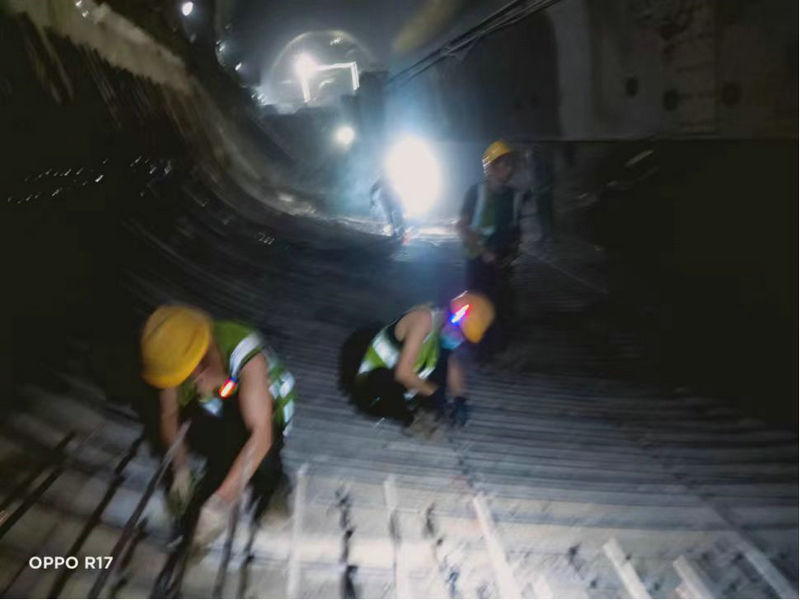 項(xiàng)目部中梁山隧道出口員工進(jìn)行仰拱干勁板扎
