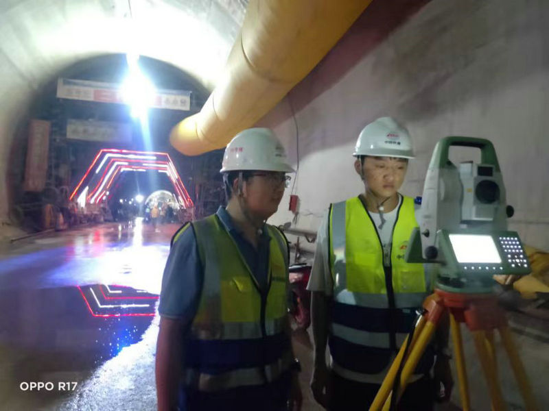 項(xiàng)目部測(cè)量隊(duì)在中梁山隧道進(jìn)口進(jìn)行洞內(nèi)導(dǎo)線復(fù)測(cè)