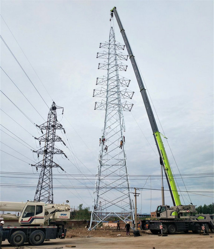 圖四、中鐵建大橋局電氣化公司高阜錦鐵路66KV遷改四回路鐵塔組立