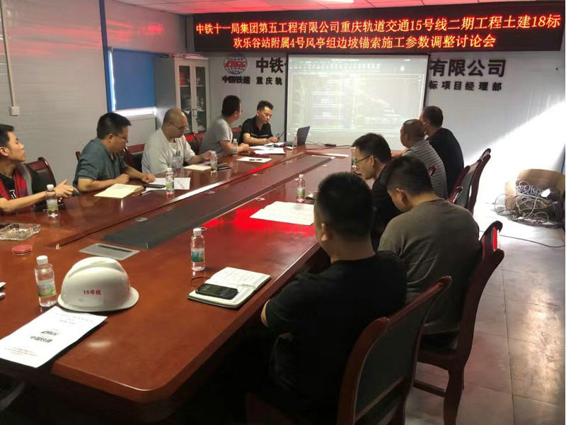 8月20日上午,中鐵建重慶軌道交通15號線二期土建工程總承包部18標項目部組織召開歡樂谷站附屬結構工程4號風亭基坑邊坡錨索施工參數(shù)調整討論方案專題會,建設單位、設計單位、地勘單位、跟審單位、質量檢測單位、總包單位和施工單位相關單位負責人和現(xiàn)場代表參加會議。結合專題小組現(xiàn)場核查情況、監(jiān)控量測結果和專題會研討結果,建設單位確認歡樂谷站附屬結構工程4號風亭基坑邊坡錨索施工參數(shù)根據(jù)設計圖紙要求和現(xiàn)場鉆孔入巖情況確認,同時做好驗孔記錄的簽認工作,該施工參數(shù)調整方案順利通過了論證。