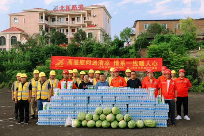 酷暑送清涼,關(guān)愛暖人心。8月20日,內(nèi)江市東興區(qū)水利局黨組書記、局長劉太平一行來到北新路橋集團西安分公司內(nèi)江市東興區(qū)水務(wù)示范縣項目開展“送清涼”慰問調(diào)研。