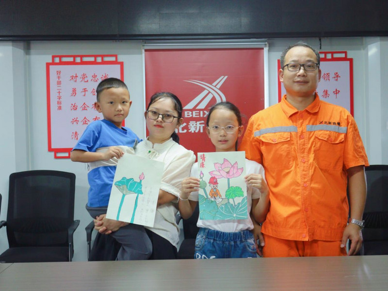 座談會后,該項目工會小組為前來探親的職工子女發(fā)放了書籍、書包、籃球等禮物。職工子女們通過繪制荷花等作品助力“親情助廉”活動,營造和諧溫馨的家庭氛圍。
