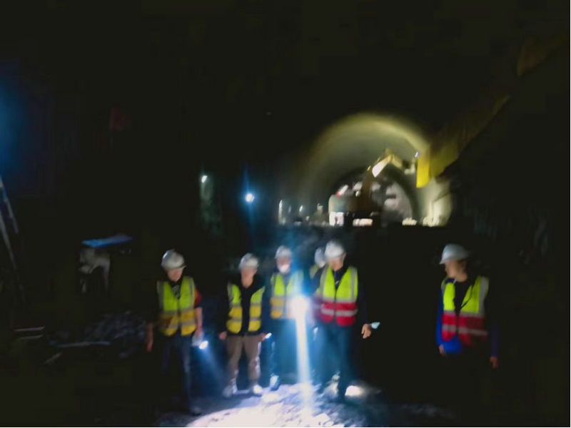 項(xiàng)目經(jīng)理阮超(右二)書記韓崇生(右一)帶隊“夜查”、確保工程早會內(nèi)容與實(shí)際工作不脫節(jié)。