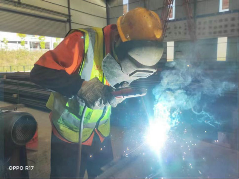 中梁山隧道出口鋼筋加工車間焊花閃閃