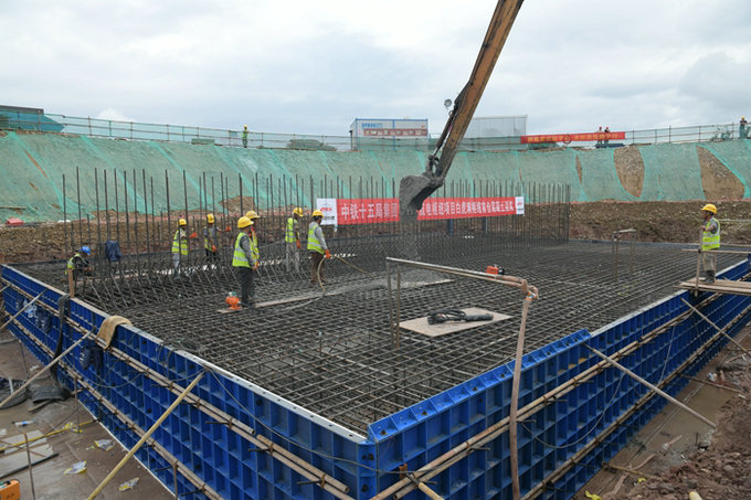 常山江航電樞紐主要工程量:拆除1座水電站、3座大橋,新建4座水利樞紐,每座均設(shè)發(fā)電站、船閘、泄洪閘、導(dǎo)流墻、應(yīng)急通航設(shè)施,改建4座橋,服務(wù)區(qū)1處、錨地4處,圍堰土石方49.5萬(wàn)立方,高壓旋噴樁防滲墻4.8萬(wàn)立方,混凝土127.6萬(wàn)立方,航道清理346萬(wàn)立方,防護(hù)堤及護(hù)岸加固30.971公里。白虎灘樞紐位于常山縣樊溪村附近,有1座電站,15孔泄洪閘、應(yīng)急過(guò)船設(shè)施、船閘、電站主副廠(chǎng)房等。該公司挑選10多名精兵強(qiáng)將進(jìn)駐白虎灘樞紐,并制定了科學(xué)的施工組織方案,為施工打開(kāi)局面起了關(guān)鍵作用。白虎灘樞紐在常山江水域,先筑起堅(jiān)固的圍堰擋瞄準(zhǔn)安全質(zhì)量、進(jìn)度產(chǎn)值、環(huán)保等目標(biāo),組織挖掘機(jī)、鏟車(chē)、自卸車(chē)進(jìn)場(chǎng)填筑一座呈正方形的超大圍堰,并啟用兩臺(tái)鉆孔機(jī)開(kāi)始旋噴樁作業(yè)。7月下旬開(kāi)工以來(lái),利用少雨的天氣,組織開(kāi)展勞動(dòng)競(jìng)賽,主管領(lǐng)導(dǎo)現(xiàn)場(chǎng)督導(dǎo),解決施工難題,確保施工順利進(jìn)行。與此同時(shí),現(xiàn)場(chǎng)管理人員積極想辦法調(diào)動(dòng)施工人員的積極性,施工進(jìn)度不斷加快。經(jīng)過(guò)各方努力,一座長(zhǎng)1000米、高4米、底寬23.2米、頂寬8米的圍堰順利建成,并在圍堰上打入地下1631根4.9—9.25米長(zhǎng)的旋噴樁。為了按期完成導(dǎo)流墻混凝土基礎(chǔ)節(jié)點(diǎn)目標(biāo),該公司在圍堰填筑到一定規(guī)模時(shí),調(diào)集挖掘機(jī)、破碎機(jī)開(kāi)挖導(dǎo)流墻基坑,河道淤積層挖完,完全依靠破碎機(jī)炮擊征服泥巖和砂巖,經(jīng)過(guò)一個(gè)多月緊張激烈的施工,一座147米長(zhǎng)、寬16.58米長(zhǎng)、4米多深的長(zhǎng)方形基坑順利完成。管理人員馬上組織隊(duì)伍進(jìn)行鋼筋籠綁扎,一切就緒后進(jìn)行首段混凝土施工。采取自卸車(chē)運(yùn)輸混凝土、長(zhǎng)臂挖掘機(jī)轉(zhuǎn)運(yùn)的方法通宵進(jìn)行混凝土澆注,從19日下午4點(diǎn)到次日早上5點(diǎn),鏖戰(zhàn)13個(gè)小時(shí),終于將長(zhǎng)20米、寬16.58米、厚度為2米的663.2立方米混凝土澆注完成。
