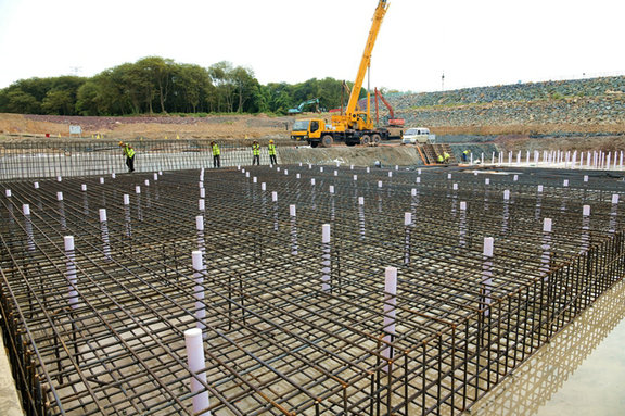 招賢樞紐項(xiàng)目去年9月正式進(jìn)入第一道圍堰土石方施工,經(jīng)過(guò)3個(gè)多月緊張施工,完成了鄰江400多米的圍堰填筑任務(wù),按照施工組織設(shè)計(jì)進(jìn)入導(dǎo)流墻、泄洪閘(含閘墩)施工階段。全長(zhǎng)166米的導(dǎo)流墻于今年4月17日完成,泄洪閘17個(gè)閘墩其中4個(gè)正在進(jìn)行上部鋼筋籠和澆注混凝土施工,1個(gè)在進(jìn)行首節(jié)施工。該區(qū)域今年汛期3個(gè)月,扒掉圍堰停工給洪水讓路,最大洪峰過(guò)境時(shí)水位增高約8米,汛期結(jié)束一周后,常山江河道洪水消退到最低位時(shí),該項(xiàng)目部啟用幾臺(tái)大功率水泵將幾萬(wàn)立方洪水排完才開始消力池施工。當(dāng)基坑挖至巖石層具備硬化條件時(shí),布網(wǎng)、澆注混凝土。每一道工序的質(zhì)量都有嚴(yán)格標(biāo)準(zhǔn),鋼筋布局縱向、橫向間隔距離、綁扎質(zhì)量、墊石、澆注等,要經(jīng)過(guò)項(xiàng)目部技術(shù)人員認(rèn)真檢查確認(rèn),再請(qǐng)監(jiān)理和業(yè)主技術(shù)人員檢查簽字認(rèn)可。