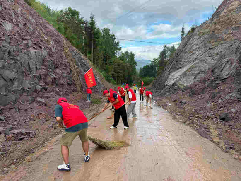 在項(xiàng)目駐地所在戩洲區(qū)域村鎮(zhèn)道路上,項(xiàng)目黨員先鋒隊(duì)、青年突擊隊(duì)隊(duì)員17人,手持鐵鍬、掃把等工具,同心協(xié)力,配合默契,充分發(fā)揮不怕苦、不怕累的實(shí)干精神,清掃路面、撿拾雨后邊坡掉落的碎石、枯枝,清除路肩、邊溝雜草及堆積物,全身心投入到清淤工作中。經(jīng)過(guò)2個(gè)小時(shí)的埋頭苦干,沿途路面煥然一新。