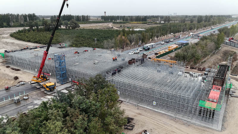 走進阿阿高速公路施工現(xiàn)場,機器、切割、焊接聲此起彼伏,施工車輛往來奔忙,一派熱火朝天的景象。阿拉爾互通2號橋跨越G580國道,為了確保行車安全,項目部在施工前進行施工方案對比,并與交通、交警部門溝通,為保證G580國道車輛行駛安全,最終確定采取現(xiàn)澆梁施工方案,但須封閉G580國道,改移道路,采用滿堂腳手架施工。在施工現(xiàn)場,一輛輛起重機高聳林立,伴隨著“滴滴”的警示聲,吊臂緩緩起降,將材料轉移到指定位置。作業(yè)人員們來回穿梭,有條不紊地搭設密密麻麻的腳手架,他們嚴格按照施工方案和技術交底進行作業(yè),該工程成了國道G580上一道靚麗的風景線。
