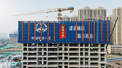 10月26日,由中鐵一局建安公司承建的中鐵天域DK-1項(xiàng)目首棟住宅樓(11#樓)主體結(jié)構(gòu)順利實(shí)現(xiàn)封頂目標(biāo)。