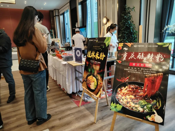 活動(dòng)現(xiàn)場(chǎng)提供了色香味俱全的湖南湯粉、桂林鹵菜粉、江西南昌拌粉、重慶酸辣粉等“寵粉”美食,讓顧客品嘗地道特色美味的同時(shí)展開(kāi)了一場(chǎng)家人間的溫馨交談之旅。現(xiàn)場(chǎng)氛圍歡樂(lè)友好,歡聲笑語(yǔ)不斷。此次活動(dòng)不僅為業(yè)主和顧客提供了難忘的美食體驗(yàn),更提升了中鐵灃河灣項(xiàng)目在灃西新城的知名度和美譽(yù)度。