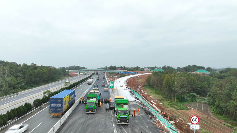 滬昆高速梨東改擴建B1標項目航拍施工現場路面攤鋪照片