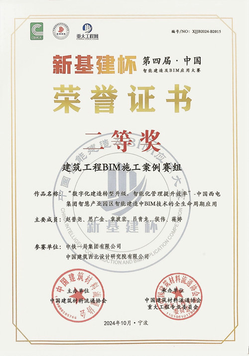 (西安訊)11月4日,中鐵一局建安公司西電智慧產(chǎn)業(yè)園(東區(qū))五標(biāo)段項(xiàng)目“數(shù)字化建造轉(zhuǎn)型升級 智能化管理提升效率”BIM技術(shù)應(yīng)用成果捷報(bào)頻傳,先后斬獲國內(nèi)四項(xiàng)大獎(jiǎng),其中包括三項(xiàng)國家級獎(jiǎng)項(xiàng)新基建杯二等獎(jiǎng)、中施企協(xié)三等獎(jiǎng)、龍圖杯優(yōu)秀獎(jiǎng)以及一項(xiàng)省部級獎(jiǎng)項(xiàng)秦漢杯二等獎(jiǎng)。同時(shí)授權(quán)實(shí)用新型專利一項(xiàng),申請實(shí)用新型專利一項(xiàng)、發(fā)表論文兩篇。