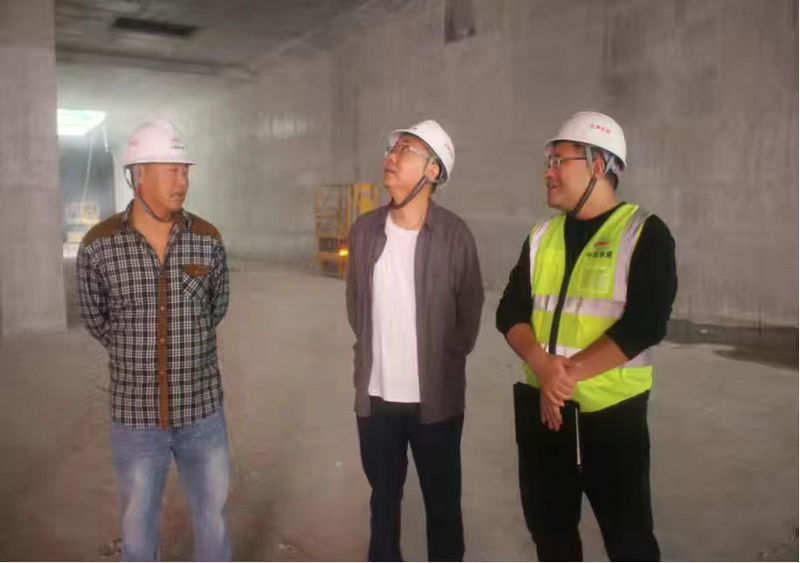 18標(biāo)項(xiàng)目副經(jīng)理張盛偉(左1)在施工現(xiàn)場(chǎng)檢查質(zhì)量