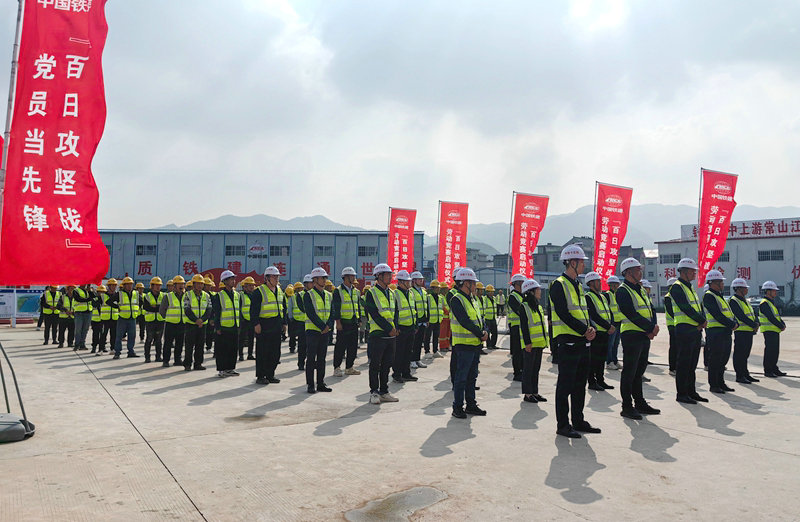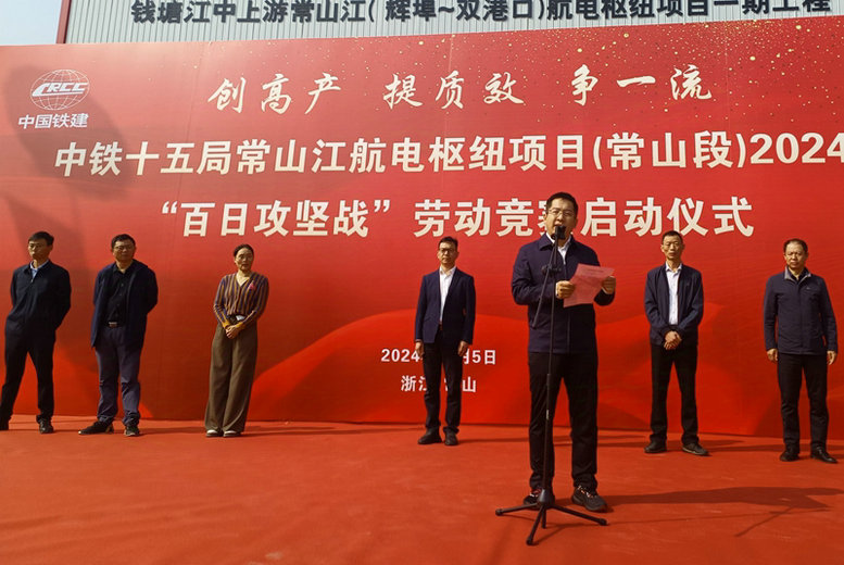 鐵路工程建設(shè)網(wǎng)訊 11月5日上午,中鐵十五局常山江航電樞紐項目部隆重舉行了“百日攻堅戰(zhàn)勞動競賽”啟動儀式,并舉行了揭牌,公司總經(jīng)理、黨委副書記田書廣作動員講話,常山縣城投集團董事長鄧輝云發(fā)言,公司副總經(jīng)理兼常山江航電樞紐項目黨支部書記、項目負責人黃偉主持。