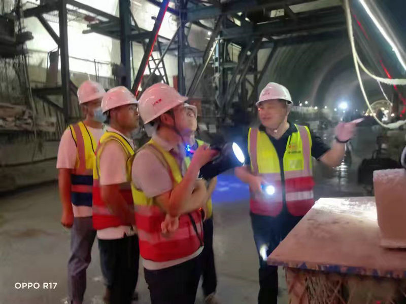 項目書記韓崇生(右一)全力以赴抓黨建融合施工生產(chǎn),按照精細(xì)化管理實施方案要求,定期組織黨員干部深入掌子面排隱患、保安質(zhì)、促進(jìn)度、傳佳績。