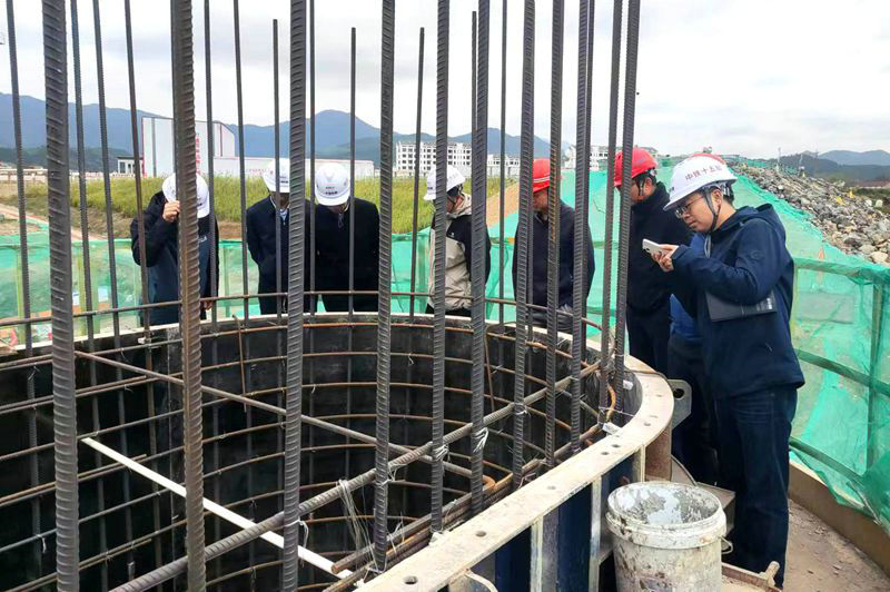 檢查組成員由浙江省交通運輸廳建管處孔紫雯,浙江省交通運輸科學(xué)研究院紀(jì)建軍、俞南峰、劉冰、鄭天方等公路與水利專家和衢州市交通局建管處處長彭文川、高級工程師姜莉穎等組成。他們依據(jù)《浙江省2024年信用評價管理實施細(xì)則》《浙江省水利建設(shè)市場主體信用信息管理辦法(試行)》,采取現(xiàn)場檢查與查看臺賬相結(jié)合的辦法,對常山江航電樞紐開展2024年信譽評價檢查。外圍檢查組深入招賢樞紐施工現(xiàn)場,聽取項目領(lǐng)導(dǎo)關(guān)于招賢、閣底、白虎灘、天馬樞紐和徐村大橋、富足山大橋工程概況、施工進(jìn)展、安全質(zhì)量、環(huán)保和文明施工等情況匯報,查看電站廠房、導(dǎo)流墻,泄洪閘閘墩消力池、護(hù)坦、底板混凝土質(zhì)量及鋼筋網(wǎng)布設(shè)間距、鋼筋籠加工,塔吊、挖掘機、汽車吊等特種設(shè)備完好率、運行等。同時對現(xiàn)場標(biāo)準(zhǔn)化建設(shè),諸如防護(hù)欄、爬梯,高空作業(yè)人員是否佩戴安全帽、系安全繩,以及現(xiàn)場各類標(biāo)語、標(biāo)牌、標(biāo)識等進(jìn)行檢查,提出有關(guān)問題要求陪同人員解答,對完成的實物量和正在施工的單項工程有了充分了解。