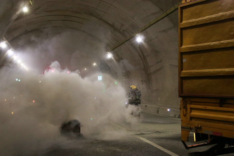 演練在廣平向石川子隧道內(nèi)開展,以兩車追尾導(dǎo)致前車車廂裝載大量易燃物突然起火為背景。