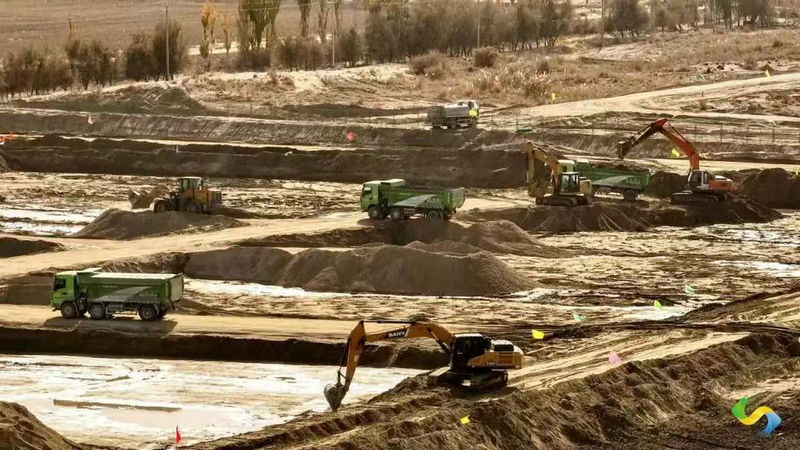 圖木舒克訊(通訊員敬啟航)11月20日,盡管寒氣逼人,但在2024年第三師高標(biāo)準(zhǔn)農(nóng)田建設(shè)項(xiàng)目二標(biāo)段四十四團(tuán)和四十九團(tuán)高標(biāo)準(zhǔn)農(nóng)田建設(shè)施工現(xiàn)場,100多臺(輛)挖掘機(jī)、推土機(jī)、裝載機(jī)、壓路機(jī) 、平地機(jī)、翻斗車、酒水車等各類機(jī)械轟鳴,數(shù)百名施工人員正緊張作業(yè),一派酣戰(zhàn)繁忙的大干場面。據(jù)了解,由新疆建咨昆侖工程建設(shè)有限責(zé)任施工的2024年第三師高標(biāo)準(zhǔn)農(nóng)田建設(shè)項(xiàng)目(44團(tuán)改造、44團(tuán)新建、49團(tuán)改造)二標(biāo)段,計劃工期264 日歷天,涉及田間整治、高效節(jié)水、渠道防滲、田間道路以及防護(hù)林工程等施工內(nèi)容。其中新建高標(biāo)準(zhǔn)農(nóng)田1.92萬畝涉及11個連隊、改造提升高標(biāo)準(zhǔn)農(nóng)田4.51萬畝涉及19個連隊。