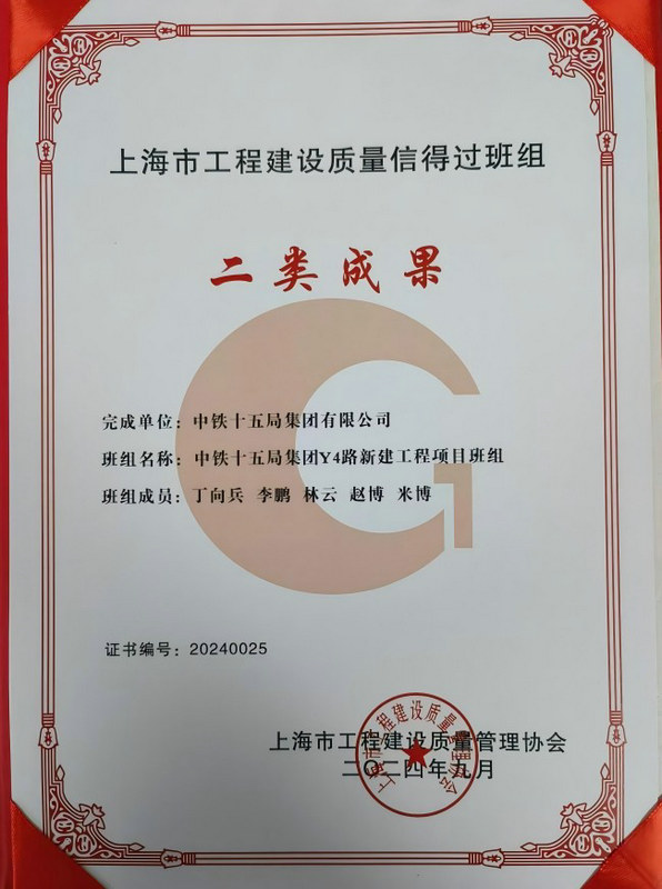鐵路工程建設(shè)網(wǎng)訊(通訊員 張聰聰)近日,中鐵十五局二公司Y4路項目憑借在工程質(zhì)量管理上的顯著成績,榮獲上海市工程建設(shè)質(zhì)量管理協(xié)會發(fā)布的上海市工程建設(shè)質(zhì)量信得過班組二類成果獎。