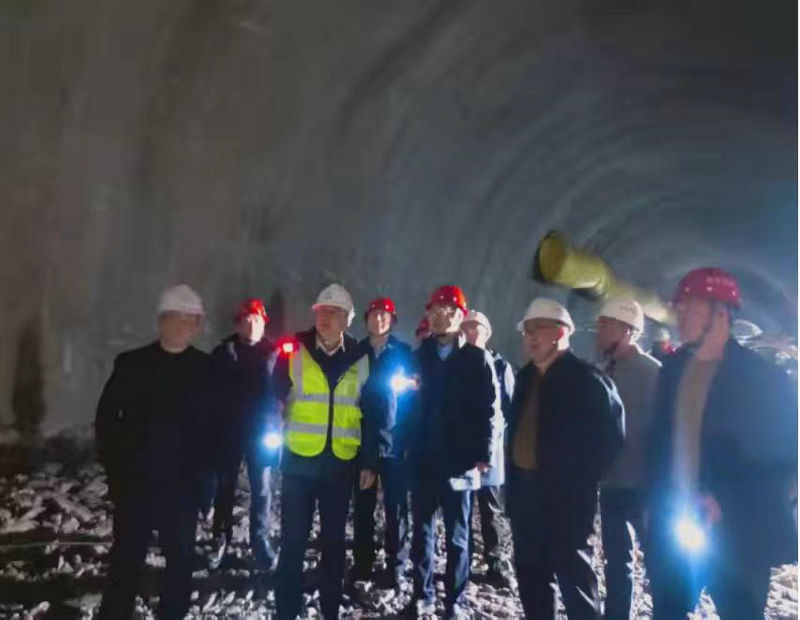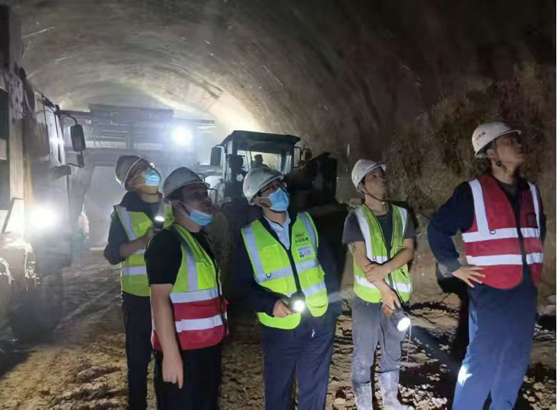 總承包部黨工委書記王向平(左2)深入隧道施工現(xiàn)場檢查督導(dǎo)