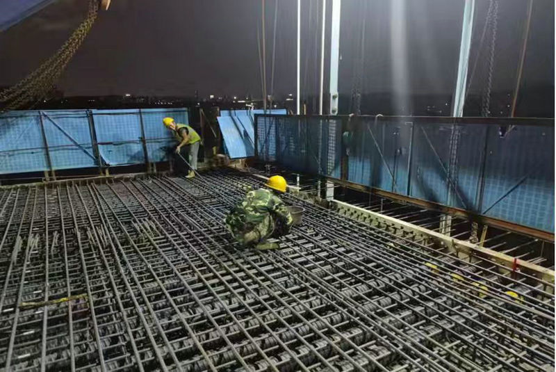挑燈夜戰(zhàn)的廖家溪軌道專用橋施工一線